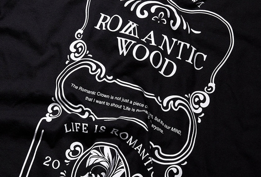 ロマンティッククラウン(ROMANTIC CROWN) ROMANTIC WOOD LOGO TEE_BLACK