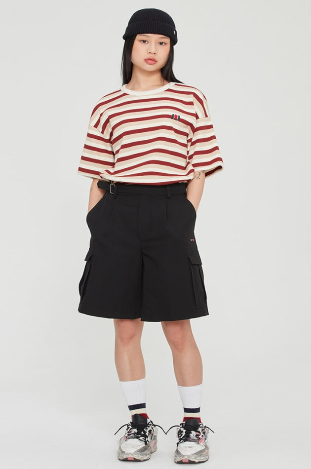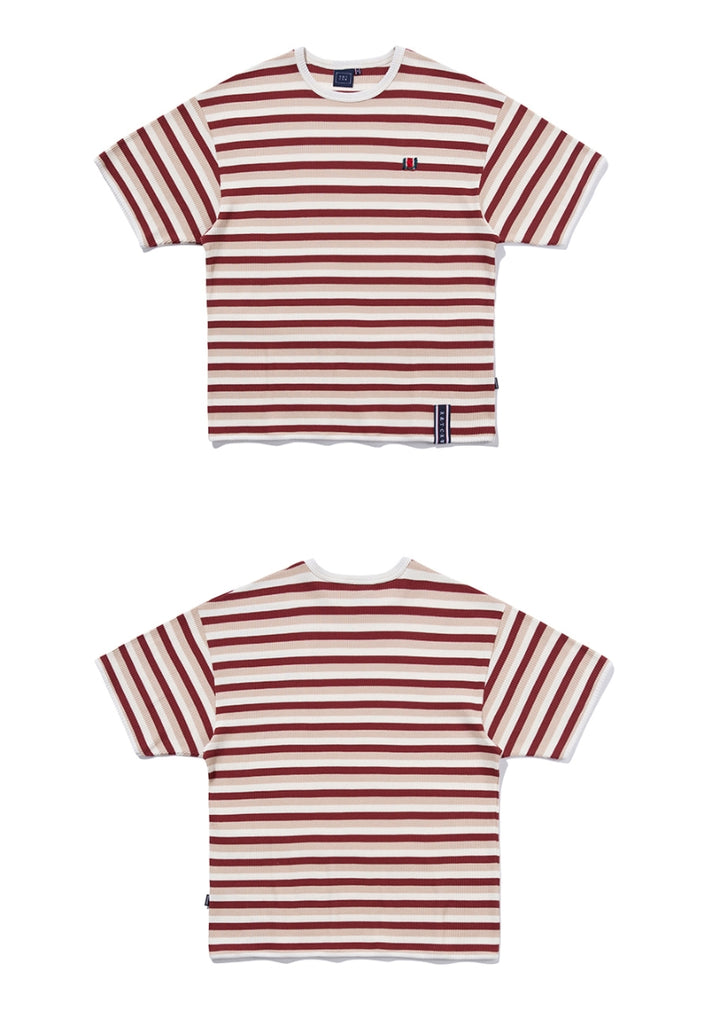 ロマンティッククラウン(ROMANTIC CROWN) STRIPE RIBBED TEE_BURGUNDY