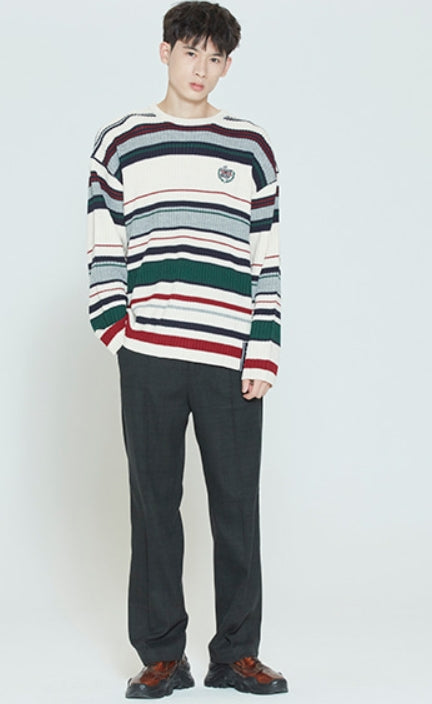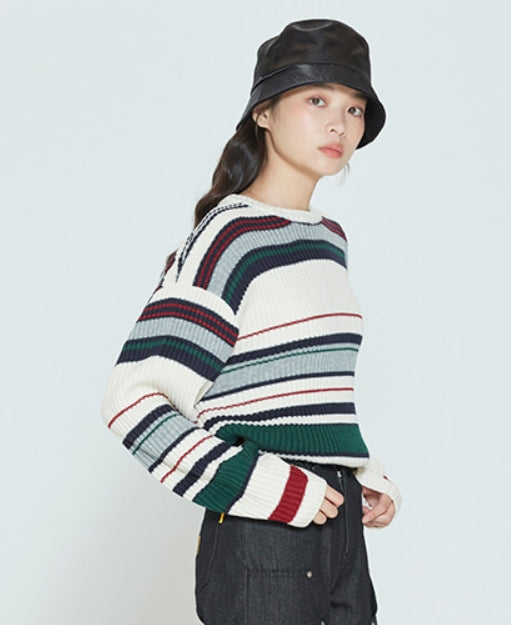 ロマンティッククラウン(ROMANTIC CROWN) STRIPED RIBBED KNITWEAR_OATMEAL