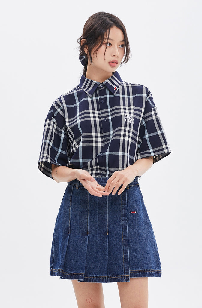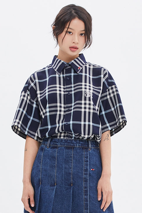 ROMANTIC CROWN(ロマンティック クラウン) CROSS CHECK HALF SHIRT_NAVY