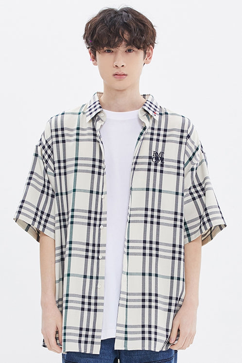 ROMANTIC CROWN(ロマンティック クラウン) CROSS CHECK HALF SHIRT_OATMEAL