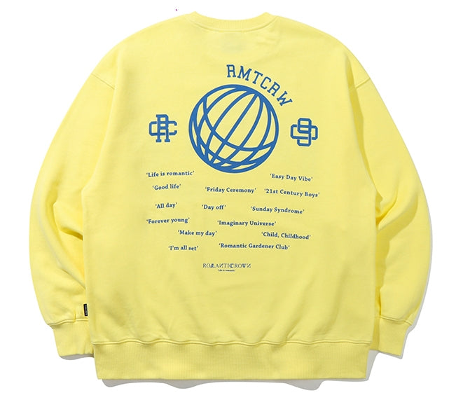 ROMANTIC CROWN(ロマンティック クラウン) GLOBE SLOGAN SWEAT SHIRT_LIGHT YELLOW
