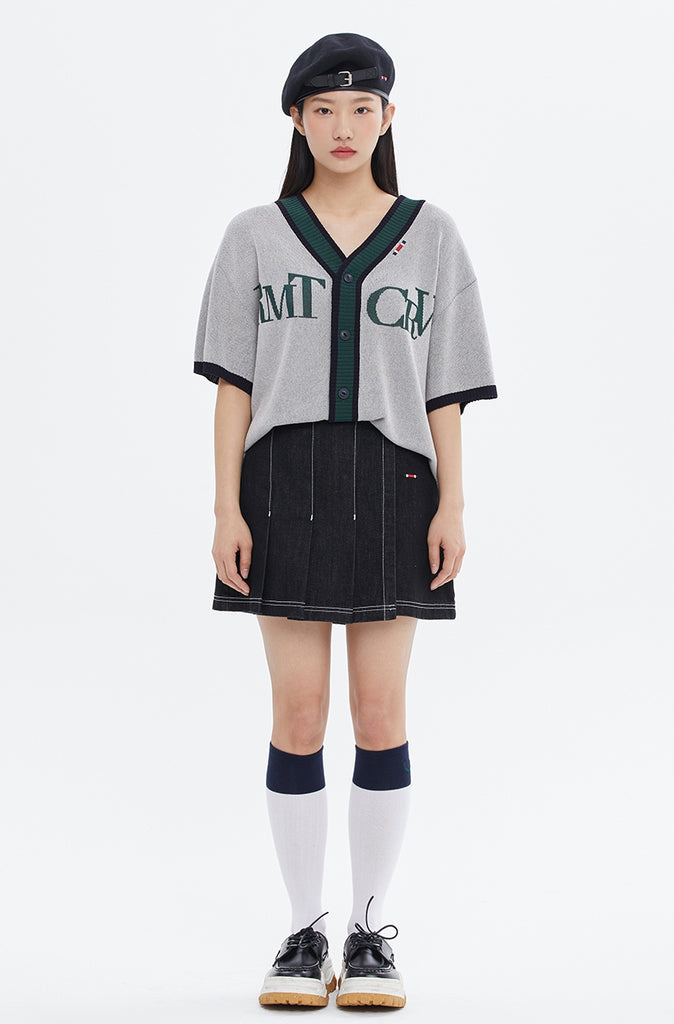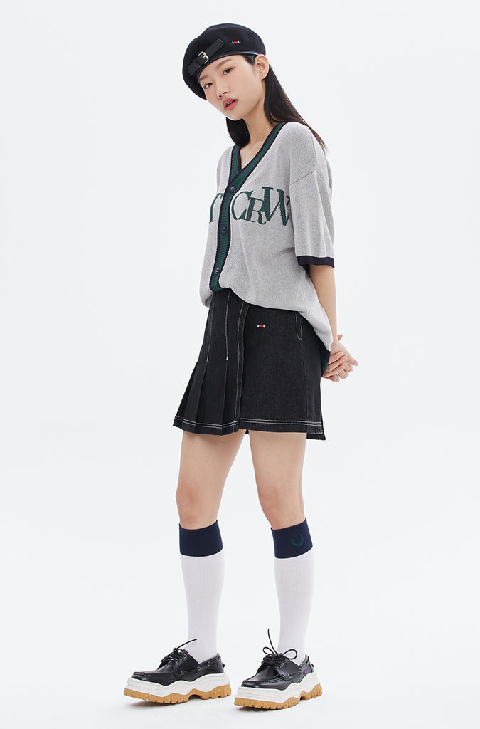 ROMANTIC CROWN(ロマンティック クラウン) RECENT LOGO HALF CARDIGAN_LIGHT GREY