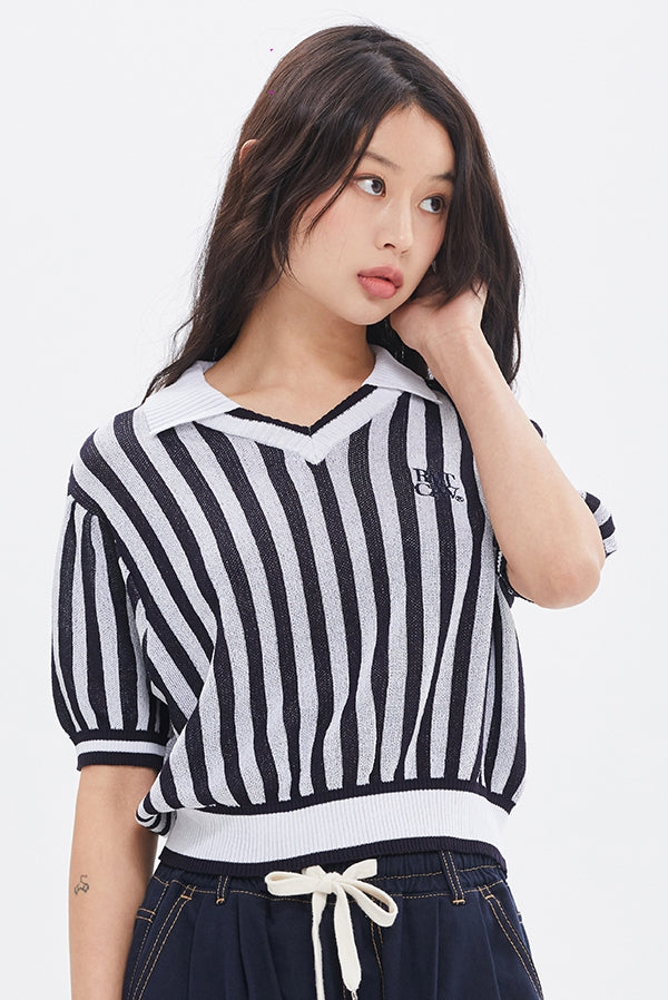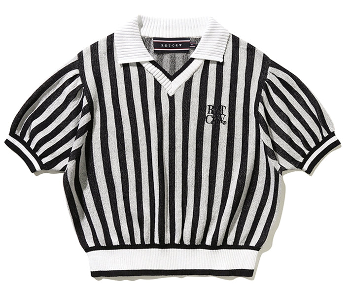 ROMANTIC CROWN(ロマンティック クラウン) STRIPE BALLOON KNIT TOP_NAVY