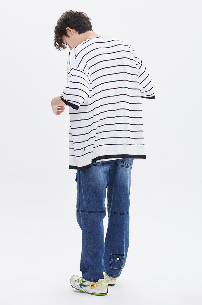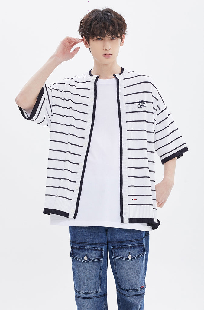 ROMANTIC CROWN(ロマンティック クラウン) STRIPE HALF CARDIGAN_WHITE