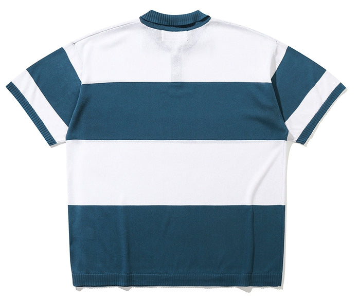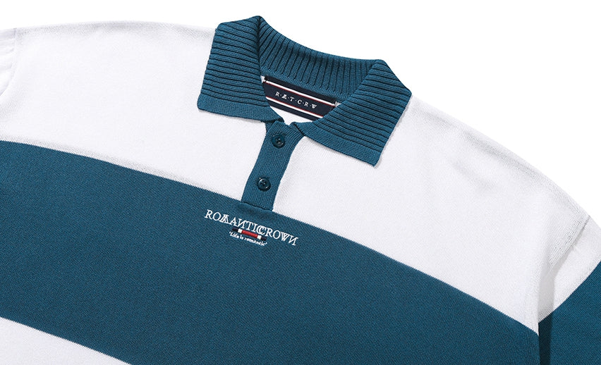 ROMANTIC CROWN(ロマンティック クラウン) STRIPE KNIT POLO_BLUE