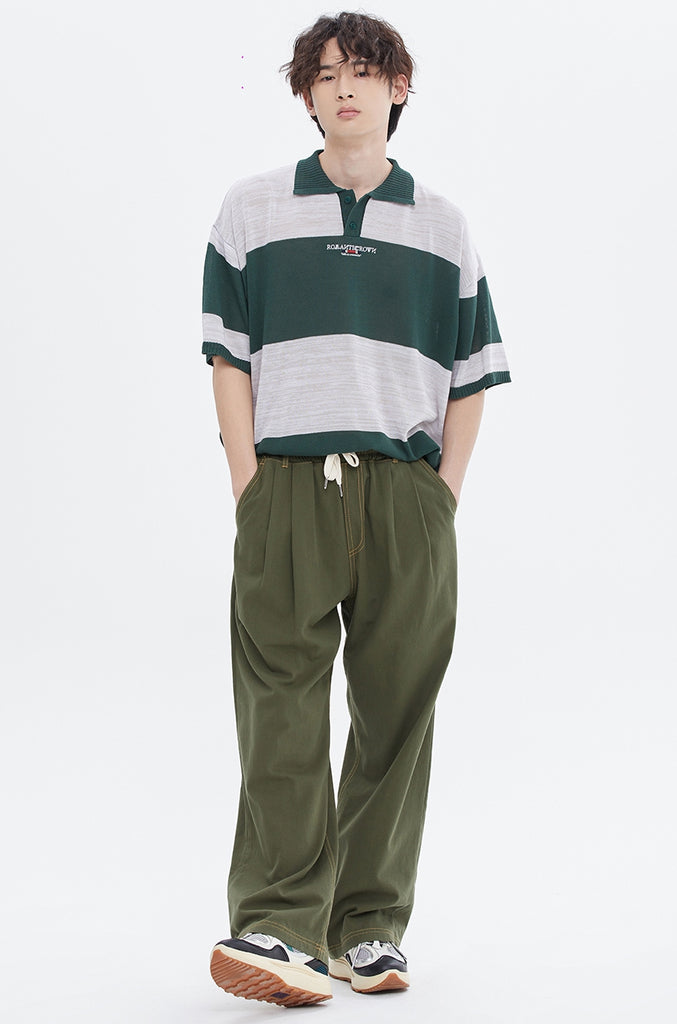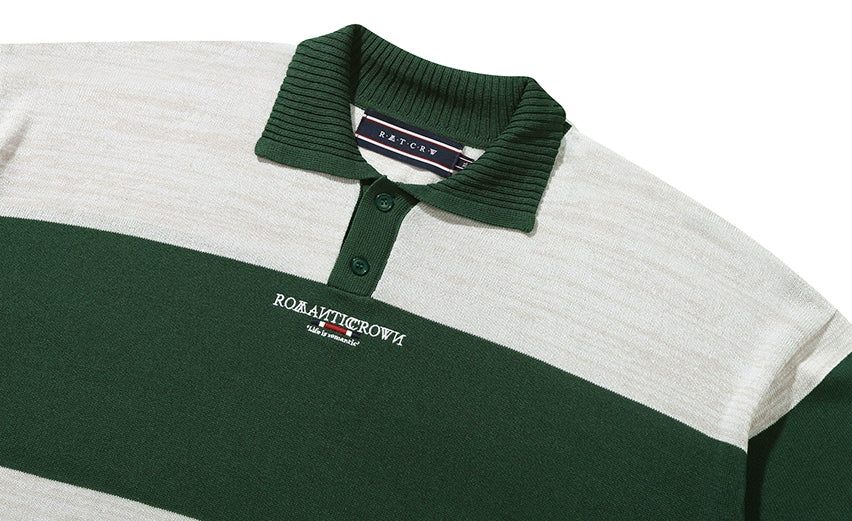 ROMANTIC CROWN(ロマンティック クラウン) STRIPE KNIT POLO_GREEN