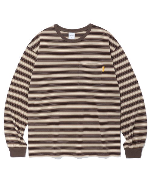 mahagrid (マハグリッド) STRIPED POCKET LS TEE BEIGE(MG2CFMT570A)