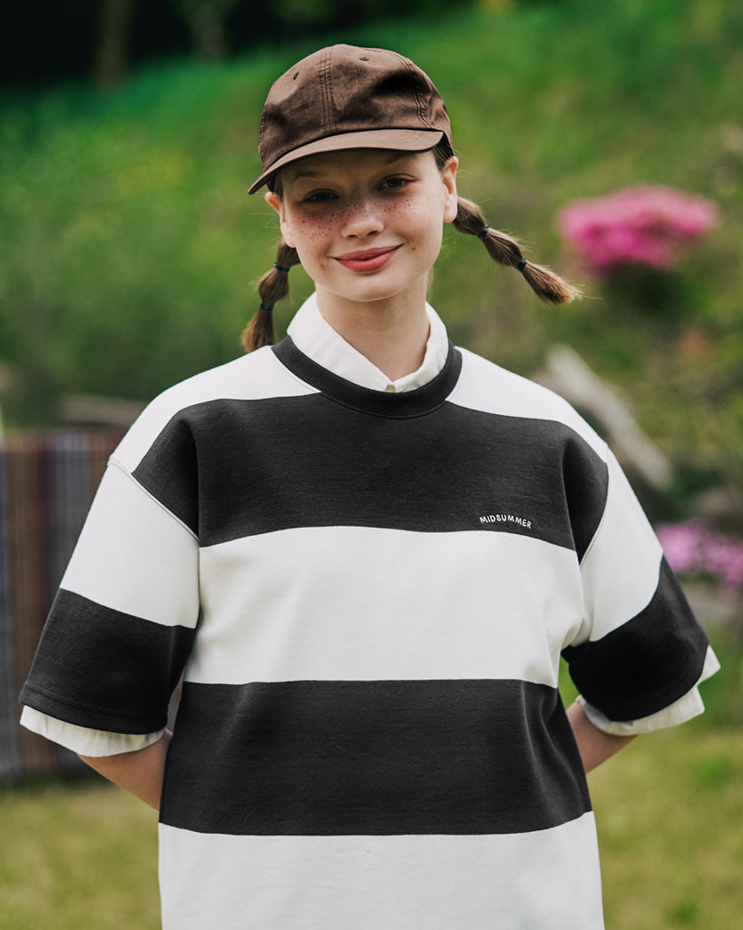 ダブルユーブイプロジェクト(WV PROJECT) Mid-Summer Stripe Short-Sleeved T-Shirt Black JIST7508