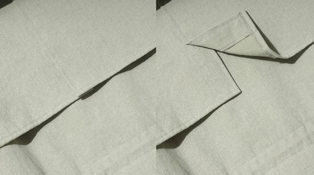 -リネン素材は収縮現象と水漏れの恐れがございますので、素早い手洗い洗濯もしくは単独洗濯をお願いいたします。
