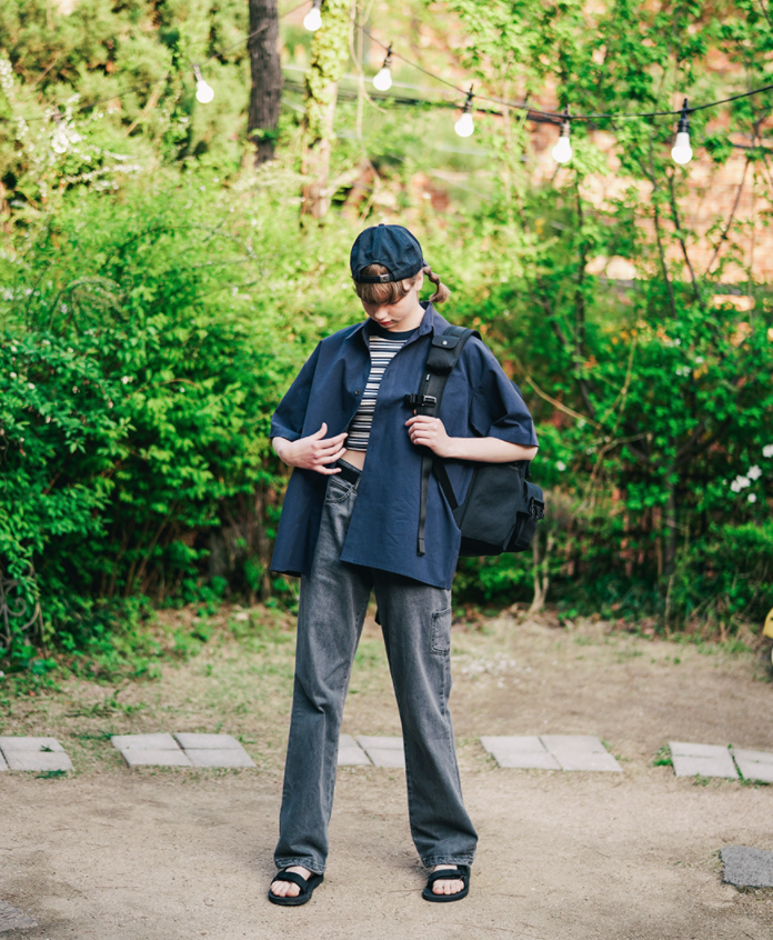 ダブルユーブイプロジェクト(WV PROJECT) Vertical Line Short Sleeve Shirt Navy JISS7501
