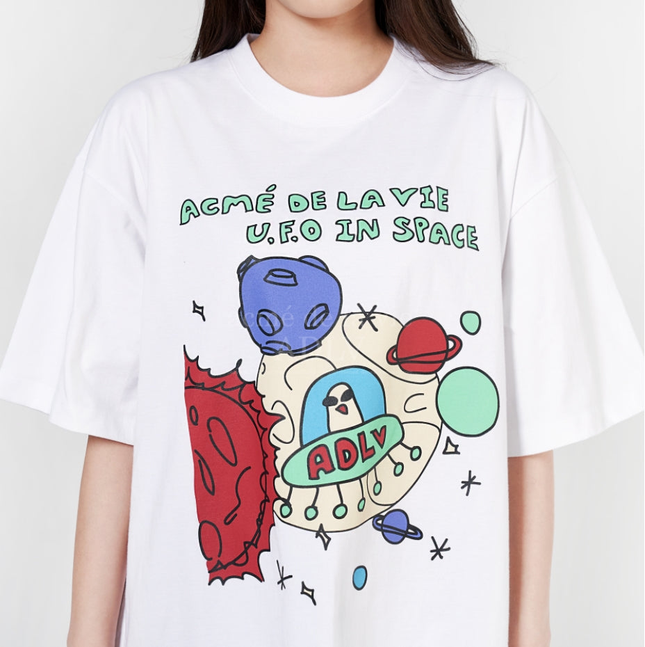 アクメドラビ(acme' de la vie) GID UFO PRINTING SHORT SLEEVE T-SHIRT WHITE