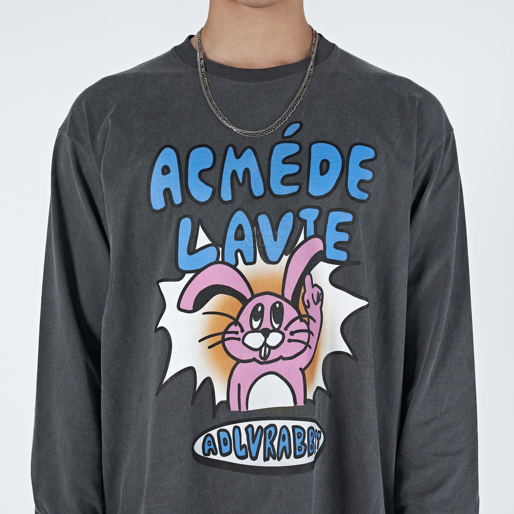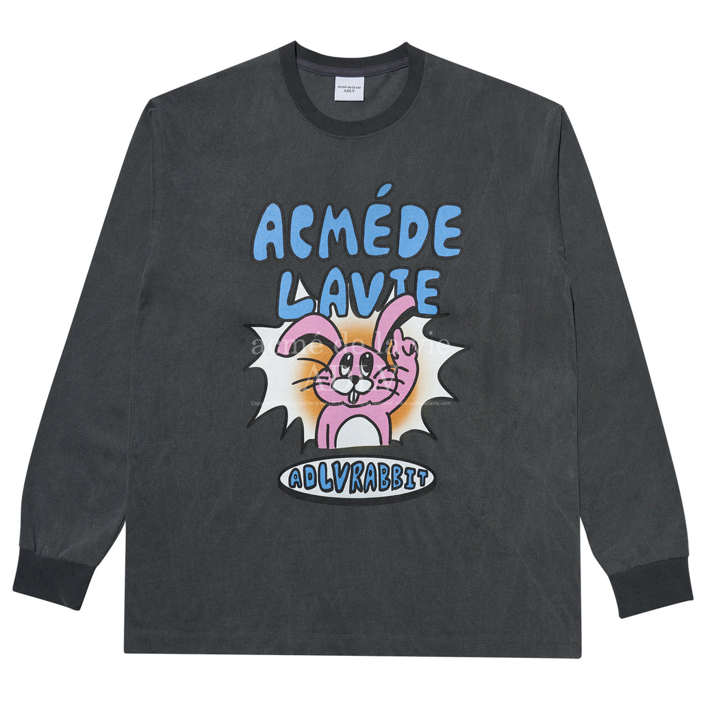 アクメドラビ(acme' de la vie) PINK RABBIT LONG SLEEVE T-SHIRT WASHING CHARCOAL