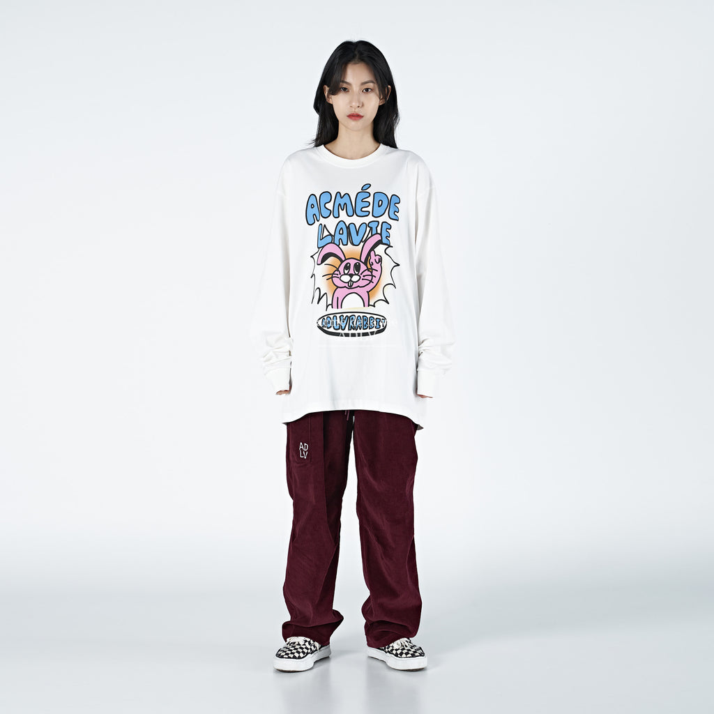アクメドラビ(acme' de la vie) PINK RABBIT LONG SLEEVE T-SHIRT WASHING WHITE