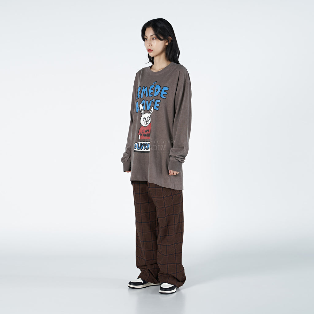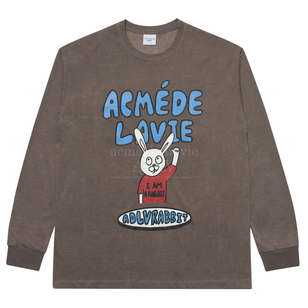 アクメドラビ(acme' de la vie) RED T-SHIRT RABBIT LONG SLEEVE T-SHIRT WASHING BROWN