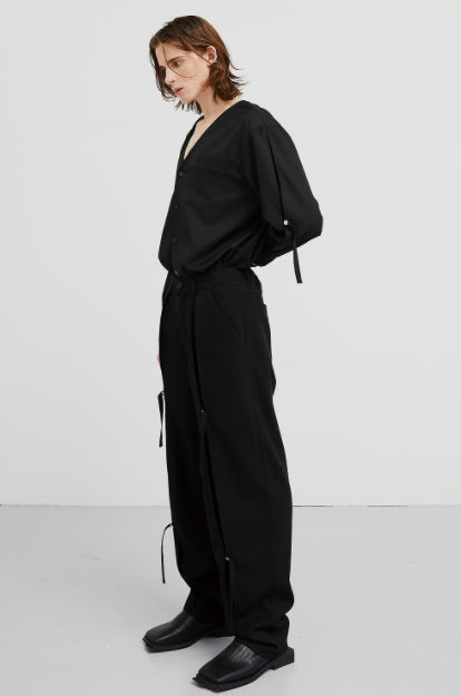 イーエスシースタジオ(ESC STUDIO) slit v-neck shirt(black)