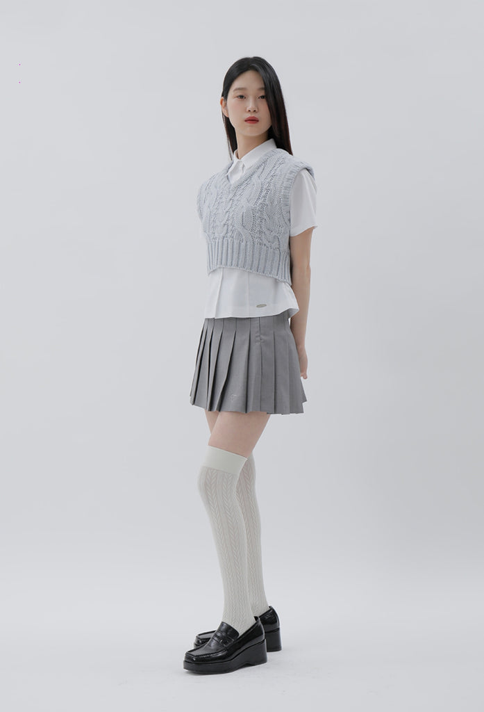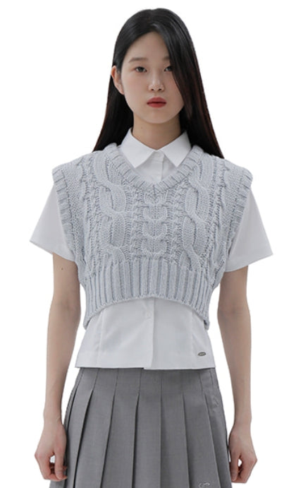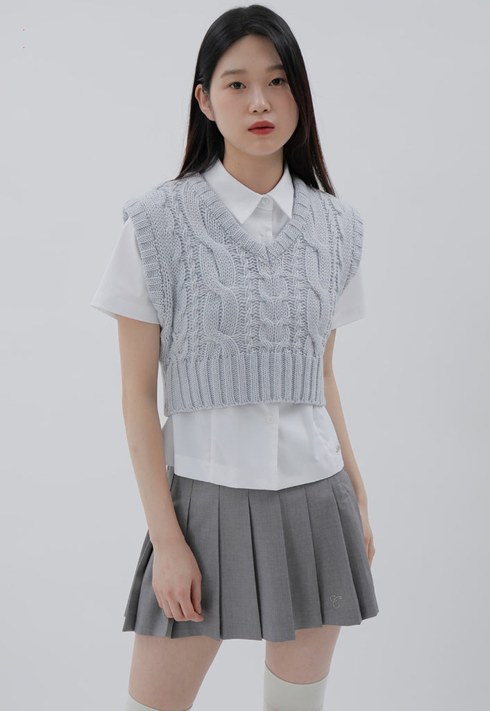 curetty (キュリティー) C BASIC CABLE KNIT VEST_LIGHT GREY