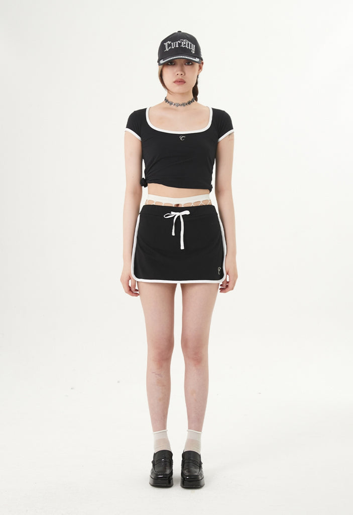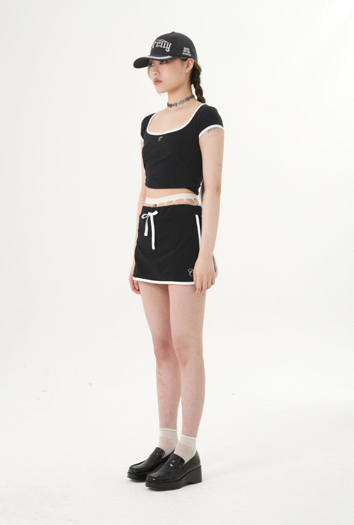 curetty (キュリティー) C CONTRAST COLOR SKIRT PANTS_BLACK