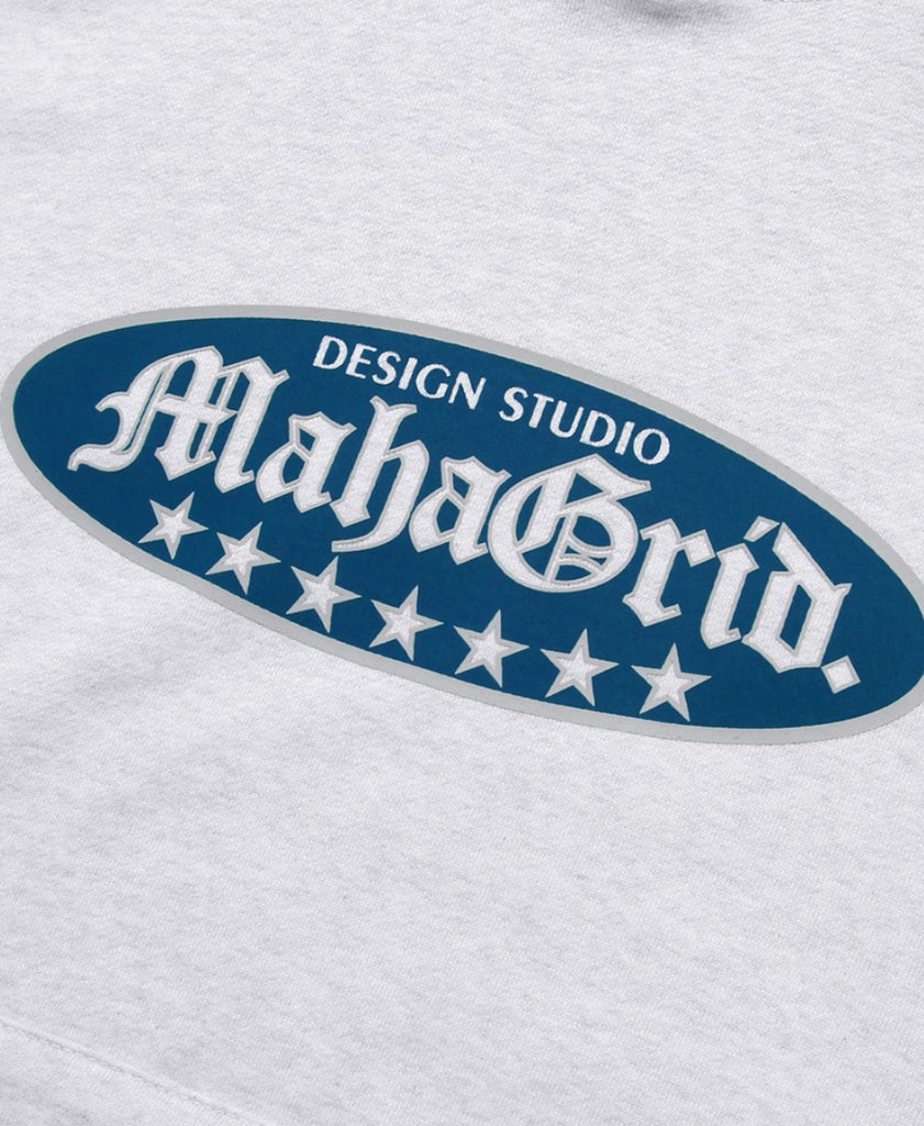 mahagrid (マハグリッド) GOTHIC OVAL LOGO HOODIE [LIGHT GREY]