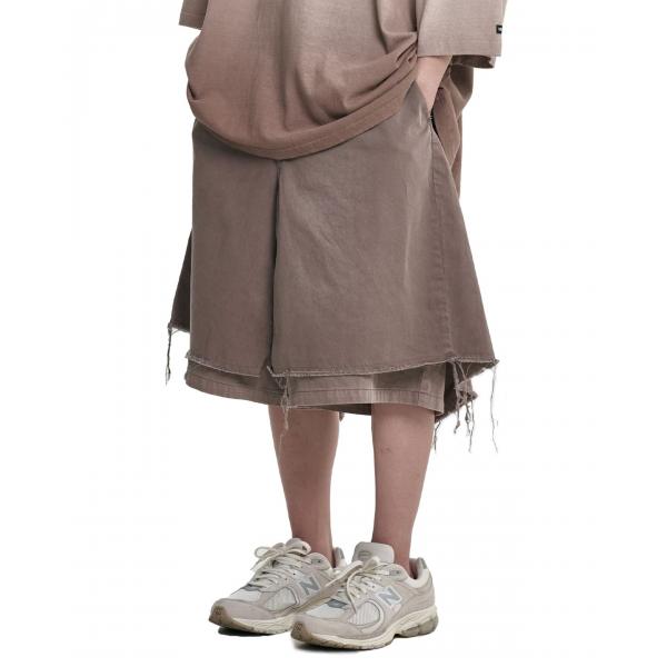 Washed Layered Skirt Shorts [BROWN]